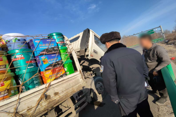 4 月 10 日 11 时 50 分许,南岗分局长江路公安检查站执勤民警在执勤过程中,发现一辆货车所载货物的苫布出现松动,如遇行驶颠簸或大风,极易发生货物掉落、遮挡视线等危险,存在严重交通安全隐患。民警立即示意车辆靠边安全停靠,向驾驶员说明风险情况,并主动上前协助驾驶员重新绑扎、固定苫布,彻底消除安全隐患。驾驶员对民警认真负责、及时提醒并出手相助表示衷心感谢。